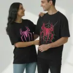 Defining your shared narrative as a newly wedded duo or engaged couple is more than just a final layer; it is a statement of heroic unity. In addition to boosting your collective confidence, our high-quality Spider-Man Couple Oversized T-shirt Pack makes a definitive impact on your joint wardrobe. Featuring perfectly coordinated red and pink spider emblems set against deep black canvases, this duo tells a distinct story—from the legendary chemistry of Spider-Man and MJ to the fresh, urban combinations of a Spider-Man: Brand New Day aesthetic.