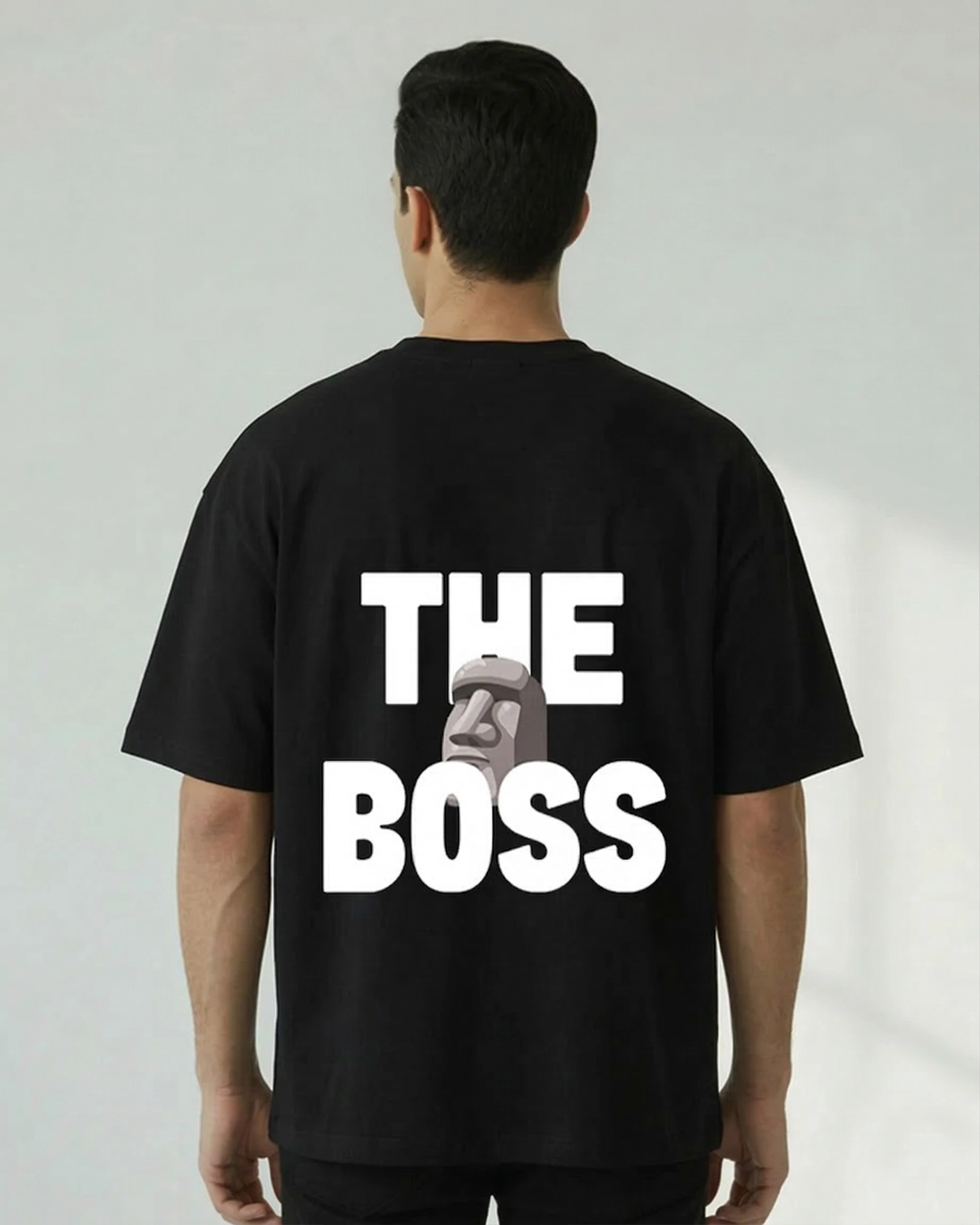 The The Boss Oversized T-shirt utilizes the stone-face (Moai) icon as a symbol of stoicism and unshakeable confidence. It represents a “Boss” who remains calm and grounded regardless of the situation.